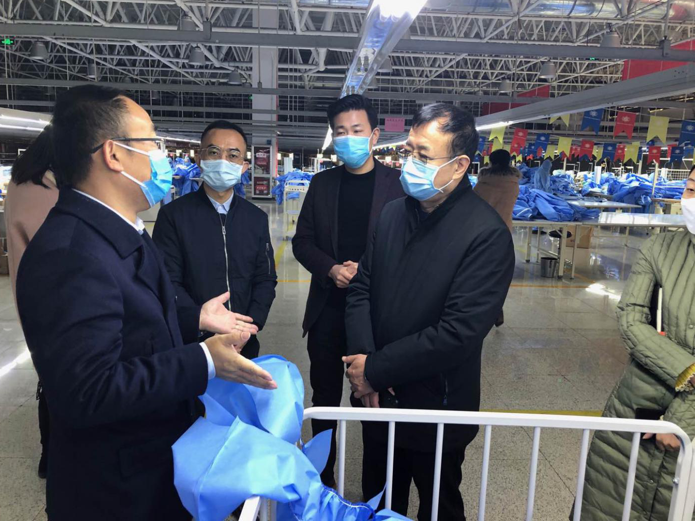 2020年2月26日上午,宁夏回族自治区工业和信息化厅党组成员、副厅长张宏年带队携口罩及消毒酒精等重要防疫物资深入苏银产业园企业一线,调研园区企业开复工最新进展情况。银川市政府副市长、苏银产业园党工委书记、苏银产业园管委会主任田国俊及苏银产业园经济发展服务部负责人陪同调研。